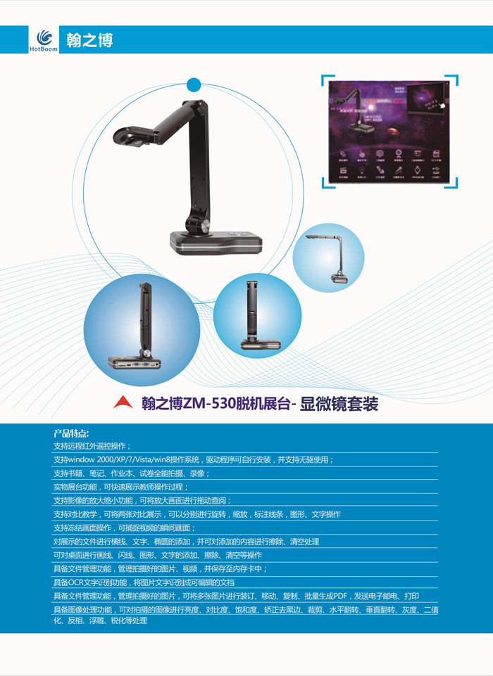 脫機(jī)展臺(tái)-顯微鏡套裝;支持原創(chuàng)紅外遙控操作;具備OCR文章識(shí)別功能